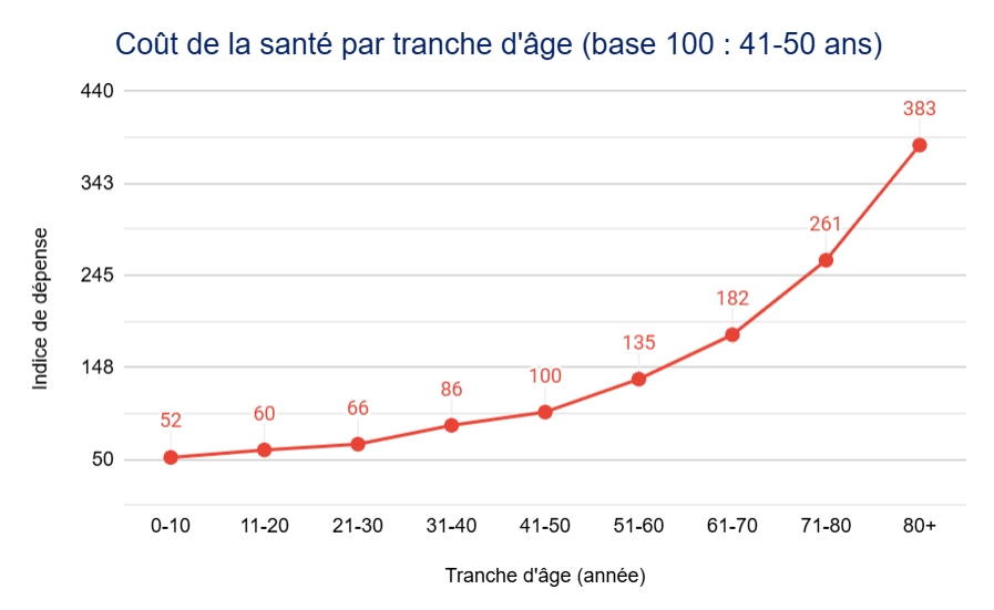 Une mutuelle santé senior coûte environ 127€/mois. Ces prix peuvent varier en fonction de l’âge :